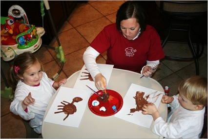 Beautiful girl! After a little playing, it was time for a little work. I had had Trigger paint a reindeer for our house a few days before so I thought I would get Sydney to paint one too! Trigger made a second one for Matt to take to his office!